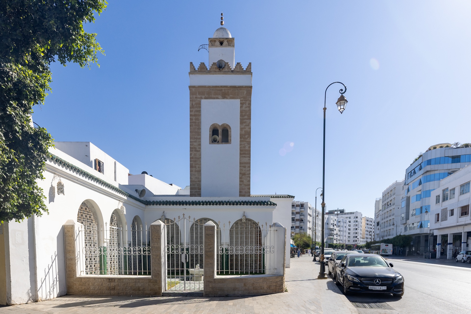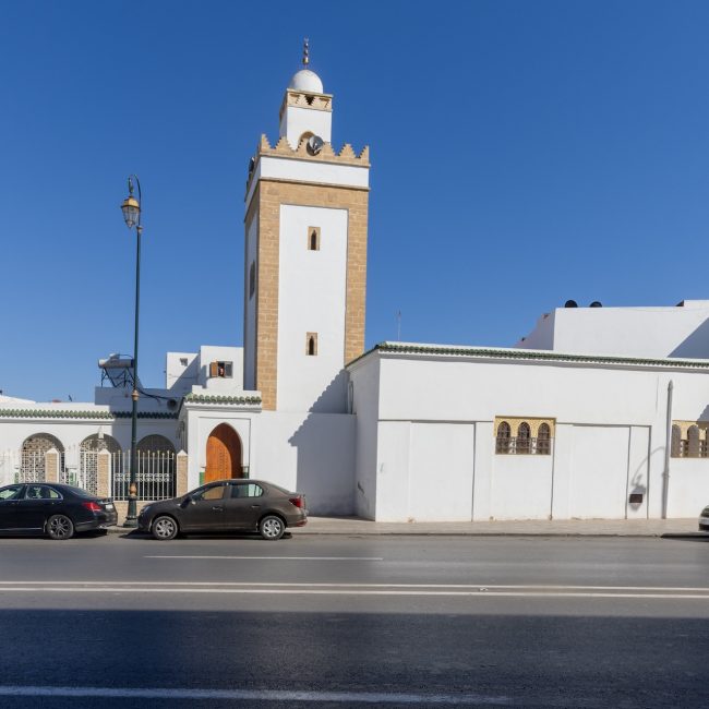 La mosquée Omar Saqqaf se dresse au cœur du quartier animé de Diour Jamaâ, à Rabat, précisément sur la rue Ibn Bajah, non loin de l’avenue Hassan II. Cette mosquée, bien intégrée dans le tissu urbain, est un point de repère à la fois spirituel et architectural dans un quartier à forte densité résidentielle. Son emplacement central en fait un lieu facilement accessible pour les fidèles, notamment lors des prières du vendredi et pendant le mois de Ramadan.
