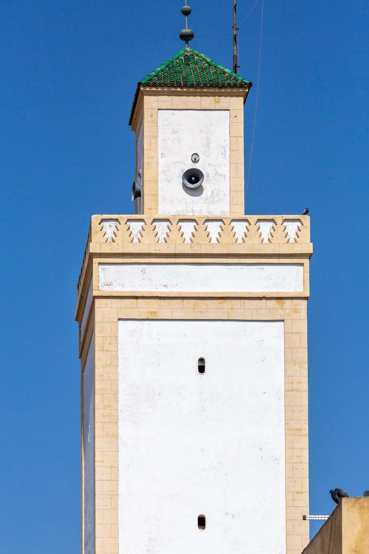 La mosquée Moulay Slimane fut construite en 1812 sous le règne du sultan Moulay Slimane, un souverain de la dynastie alaouite connu pour sa piété et son attachement à la réforme religieuse. L’édifice illustre parfaitement l’architecture sobre de l’époque, avec ses lignes épurées, ses plafonds en bois de cèdre, ses zelliges discrets et ses patios bien proportionnés. Son minaret carré, orné de motifs géométriques simples, s’élève avec dignité au-dessus des toits de la médina. L’ensemble exprime une volonté d’équilibre entre spiritualité, esthétisme et fonctionnalité, caractéristique des constructions de cette époque.