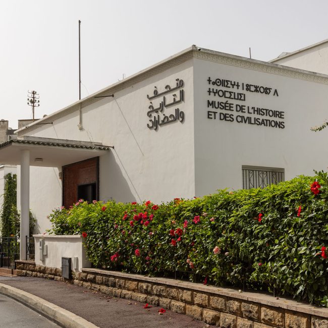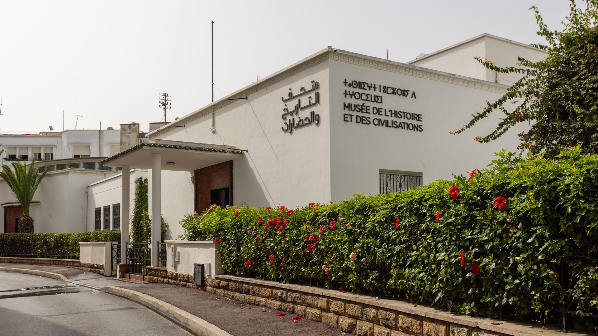 Situé dans la rue Brihi, le Musée d’histoire et des civilisations, anciennement le Musée archéologique, a été fondé en 1932. Le premier noyau du bâtiment date des années 1920 pour accueillir le Service des Antiquités crée par le protectorat. En 1930, ce service est transféré dans un bâtiment neuf. Le noyau fut agrandi par la construction de grandes salles d’exposition et des locaux administratifs où ont été transférés les plus belles œuvres archéologiques mises au jour sur le site de Volubilis. Le programme architectural est achevé en 1952 par la construction de la salle ovale dite « salle des bronzes ».