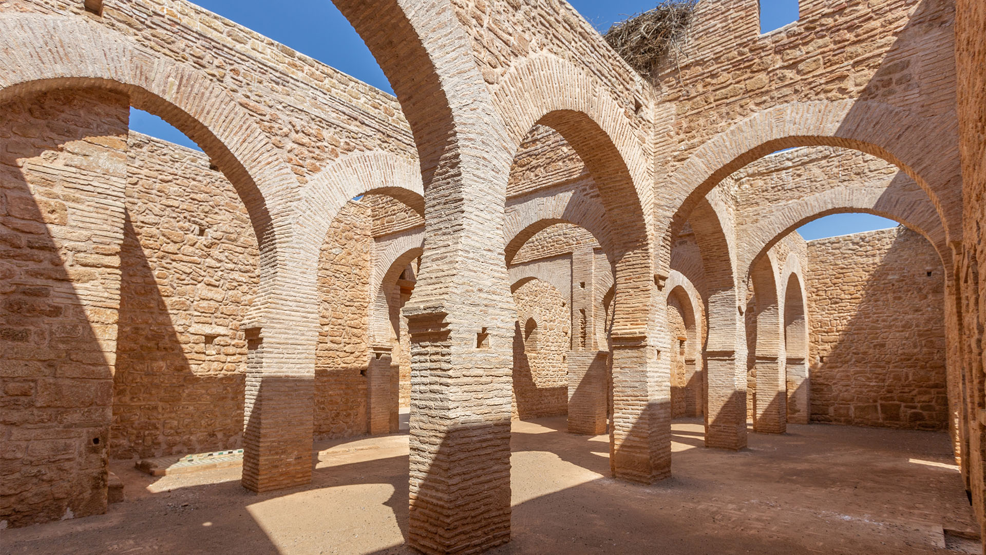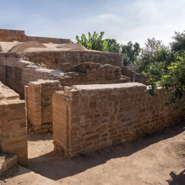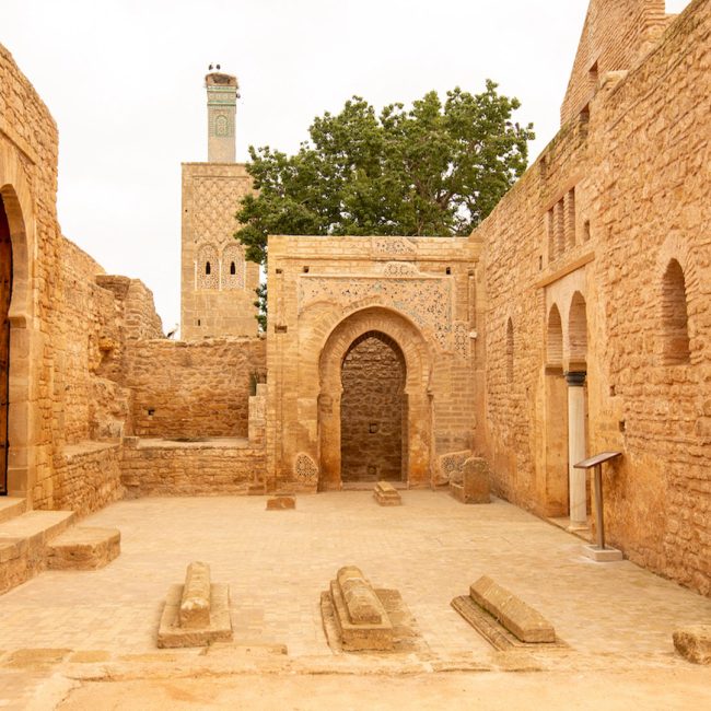 Le dernier bâtiment est la medersa qui s’élève sur le côté nord de la nécropole. De forme rectangulaire, ce bâtiment déploie autour d’une cour à ciel ouvert tapissé de zellige polychrome des cellules pour les étudiants, une salle de prière et un minaret. Les vestiges en plâtre sculpté, ceux en zellige et en marbre importé, témoignent du faste de l’art architectural marocain aux 13-14e siècles.