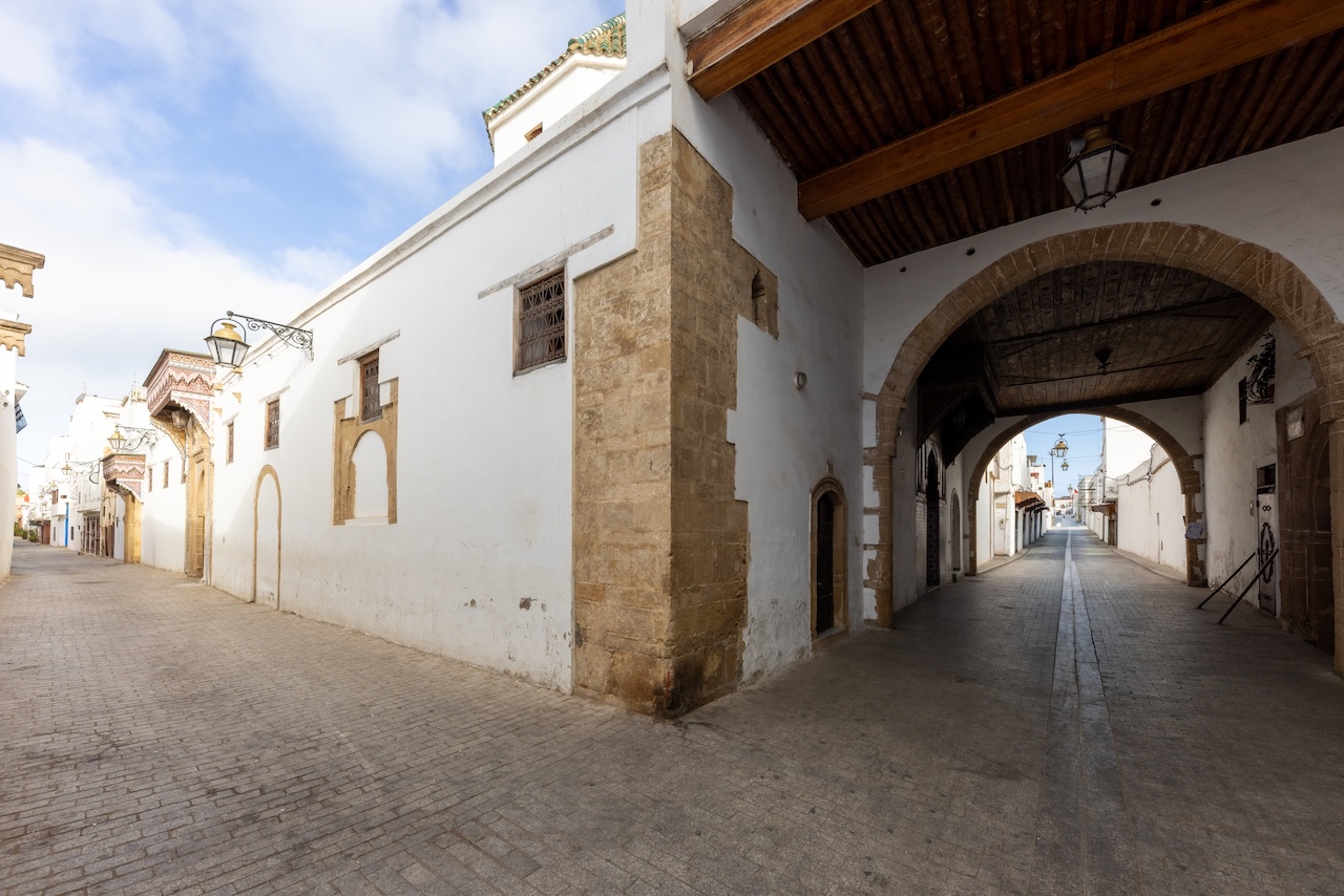 La rue Sidi Fateh est un large axe traversant la médina d’Est en Ouest marqué par une spiritualité exceptionnelle. Elles s’ouvrent par deux marabouts, localement encore très vénérés. Son entrée ouest se fait à partir de l’avenue Bab Laâlou ; elle est marquée par le marabout de Sidi Fateh dont elle tire son nom. L’autre entrée s’effectue par Bab Labouiba, percée dans la muraille mauresque datant du 17e siècle. Elle s’ouvre sur un second marabout, celui de Sidi Boumsimir, un autre homme pieux de la cité. Entre ces deux s’élèvent la mosquée Moulay Slimane, grand sanctuaire bâti à l’époque alaouite pour accueillir le nombre croissant des habitants de la cité, la zaouia An-Naciriya et la zaouia At-Touhamiya. Ces édifices en ponctuent les deux côtés et s’insèrent dans les îlots de maisons modestes pour offrir de bels exemples de portes d’entrée surmontées de porches dont certains sont soigneusement sculptés.