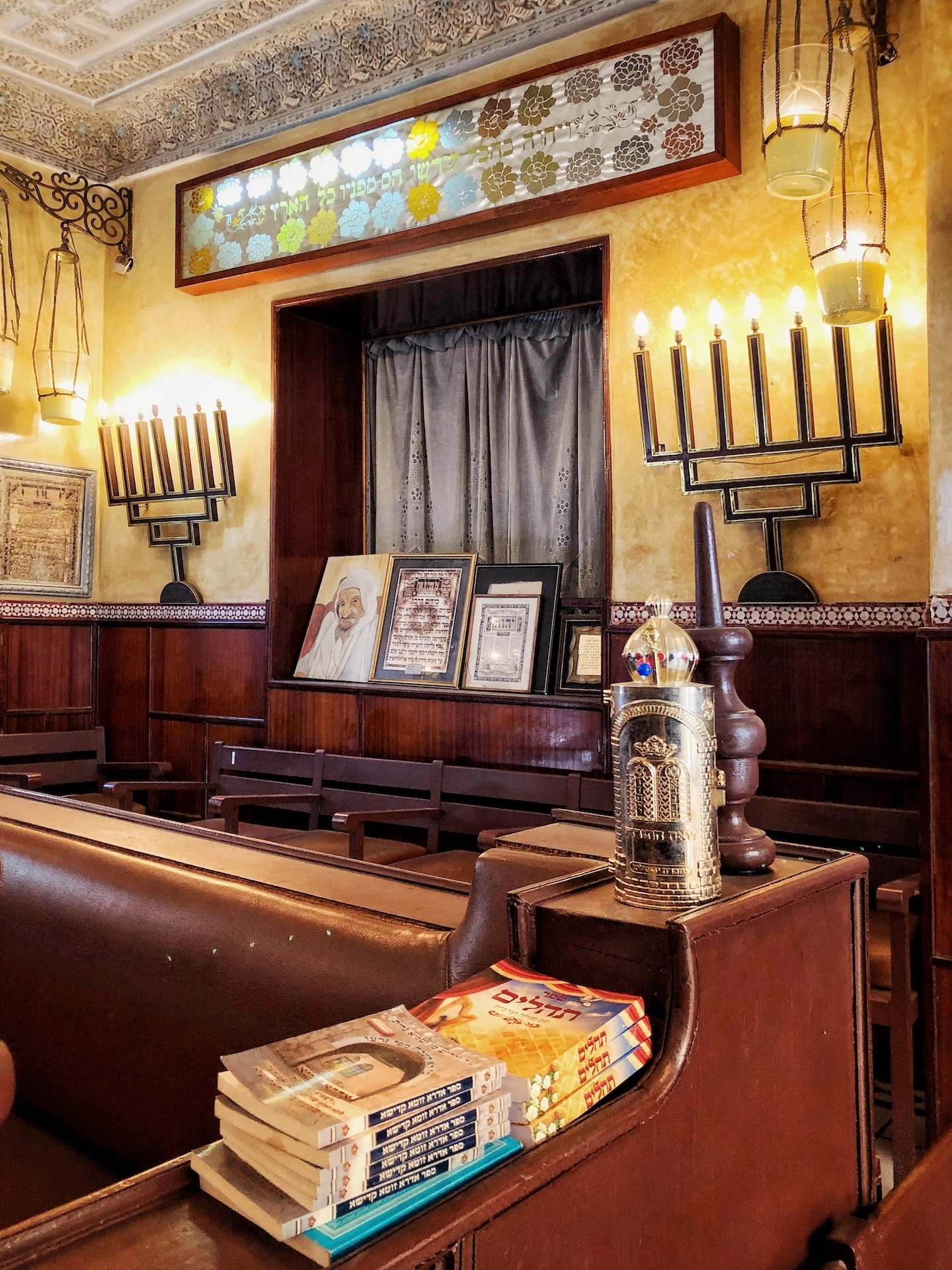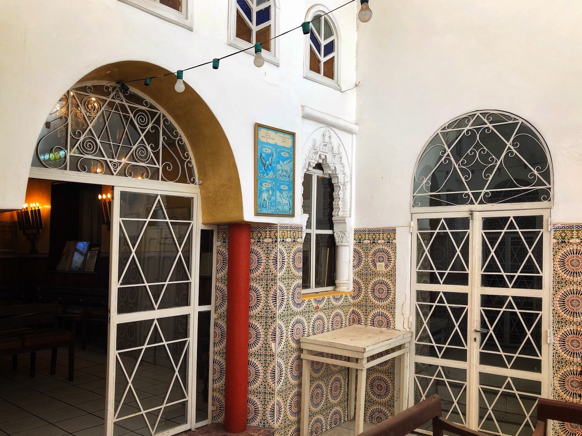 Située au cœur du Mellah, l’ancien quartier juif de la médina de Rabat, la synagogue Rabbi Shalom Zaoui est un édifice religieux emblématique. Proche de Bab Diouana et adossée à la muraille andalouse, elle est accessible par une cour peinte en rouge vif. Son architecture mauresque se distingue par des fenêtres trilobées et des lampes rappelant celles des mosquées, témoignant de l’harmonie entre les styles architecturaux juif et musulman marocains.